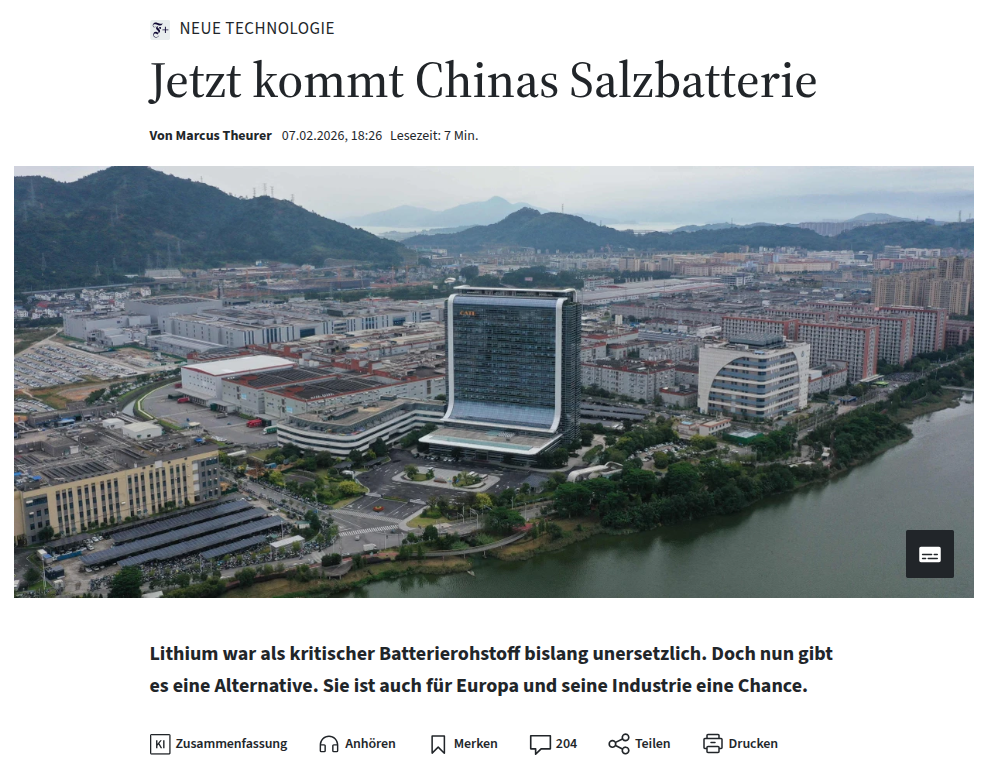 Journalist Marcus Theurer writes about the recent developments in Na-ion batteries.
